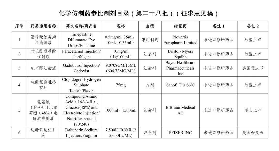 第二十八批参比目录拟公示!共计29个品种!