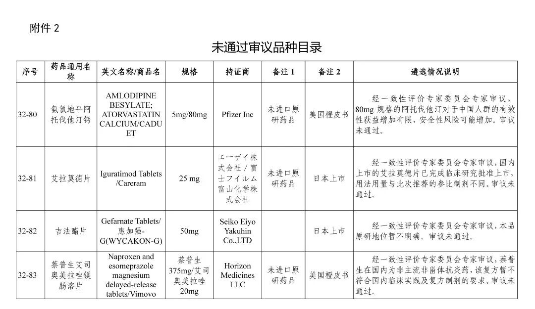 第三十二批参比目录公示,8个未通过审议!